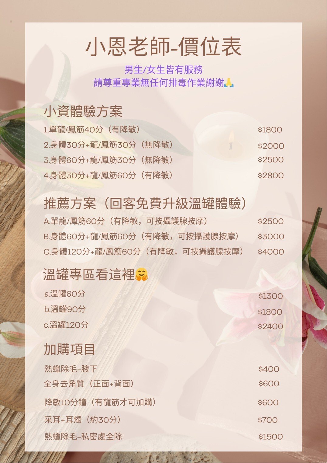 台中小恩老師 |小資3|身體60分+龍/鳳筋30分(無降敏)
