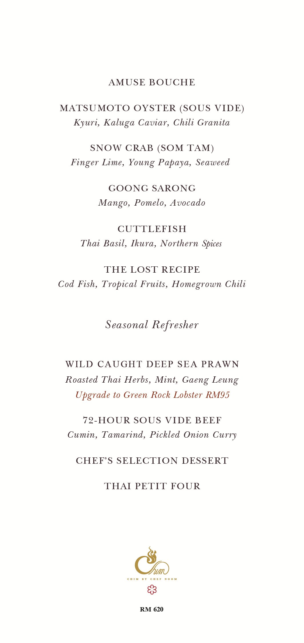 Every element of our décor is meticulously curated to complement the fine dining experience, blending traditional Thai elements with modern design to create an atmosphere of refined luxury. From the intricate patterns to the elegant furnishings, Chim Dining offers a dining environment that is both stylish and serene, perfect for an unforgettable culinary journey.